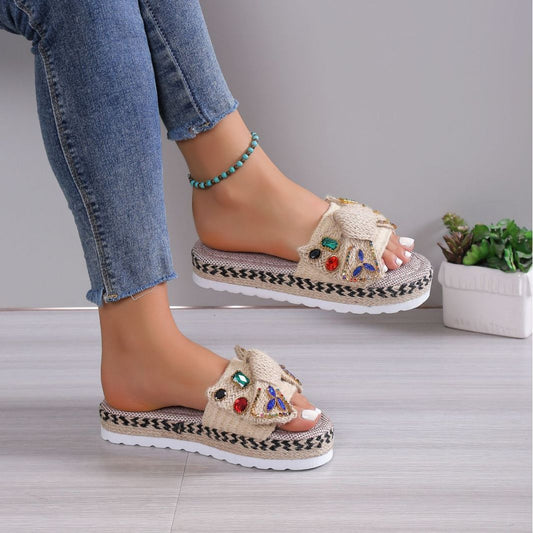 Sandales de plage à semelle plate et brides en strass couvrant les orteils