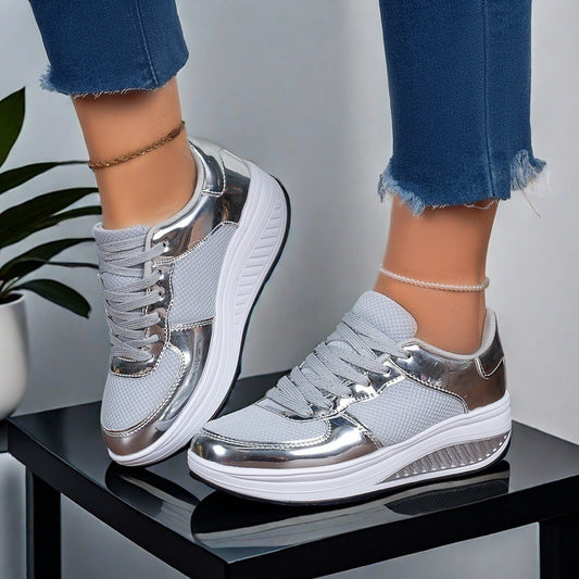 Chaussures de skate à lacets et paillettes grande taille, couleur unie